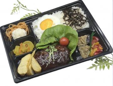ふだんのお弁当よりも大きくて、参加の人たちからとても好評でした。ハンバーグも大きくてとても満足です。